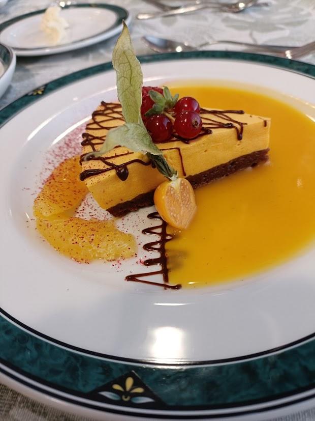 Ruokailun kruunasi tyrnimarja moussekakku.