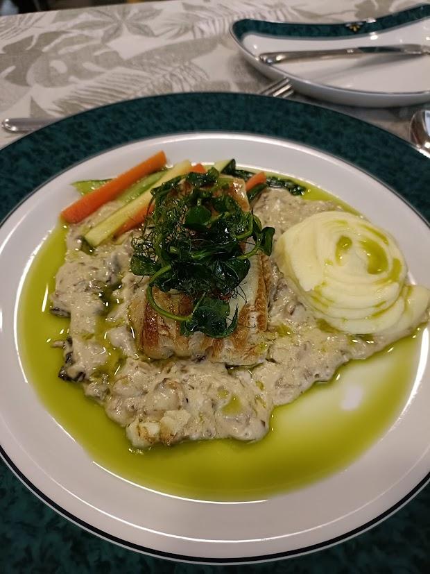 Pääruokana kalaa ja aivan uskomattoman ihanaa metsäsienikastiketta.