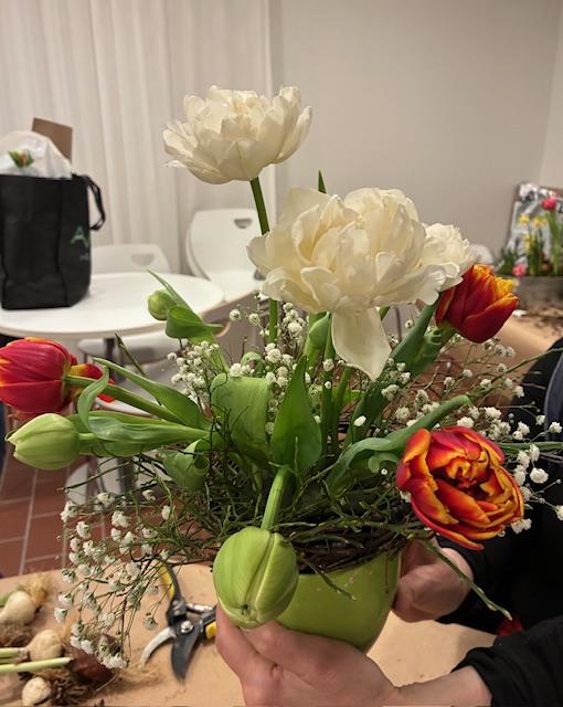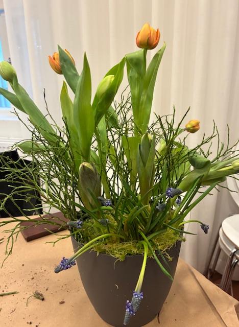 Kukkaloistoa 24.3.2026. Marttaillassa tehtyjä asetelmia.